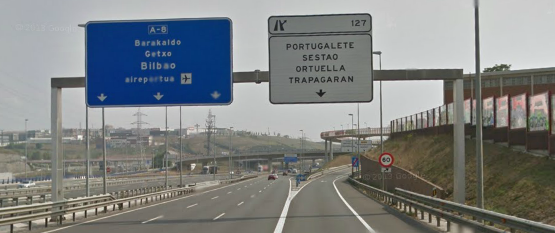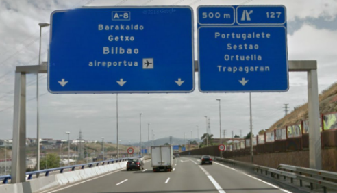 | Seguir por la autopista A-8 (carril derecho) sentido Portugalete/Barakaldo/Bilbao/Aeropuerto |