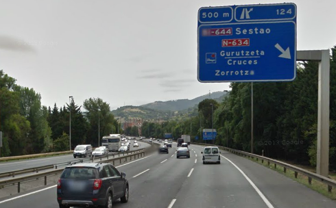 | Seguir por la autopista A-8 (carril derecho) sentido Sestao/Cruces/Zornotza |