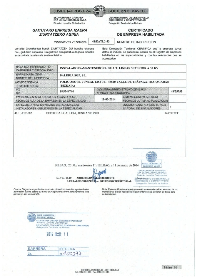 Instaladora-Mantenedora de A.T. Centros de Transformación |
